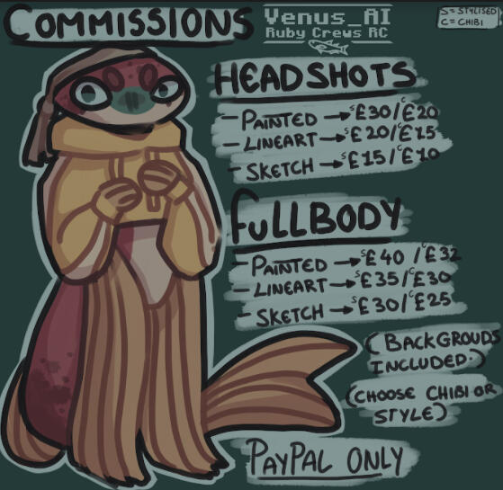 𓆝 Artworks, especially painted artworks can take a while to create. I have college, so please keep this in mind when commissioning me.